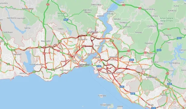 İstanbul Büyükşehir Belediyesi'nin yoğunluk haritasına göre kentte yoğunluk yüzde 80'e ulaştı.