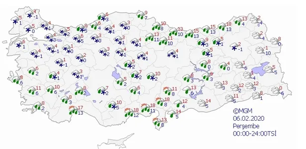Çarşamba yer yer kuvvetli sağanak yağmur şeklinde görülecek yağışların Perşembe sabah saatlerinden itibaren Pazar gününe kadar aralıklarla kar şeklinde olacağı tahmin ediliyor. İstanbul'da hava sıcaklığının 6-10 Şubat tarihleri arasında mevsim normalleri olan 3-6 derece altında seyretmesi bekleniyor. İstanbul'da daha önce şehrin yüksek ve kırsal kesimlerine yağan kar yağışının, bu defa şehir merkezinde de kürenecek kadar kar örtüsüne neden olacağı belirtiliyor.