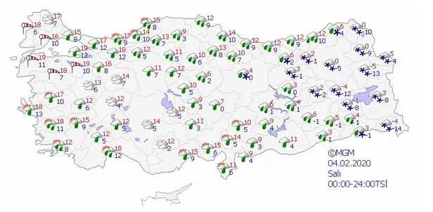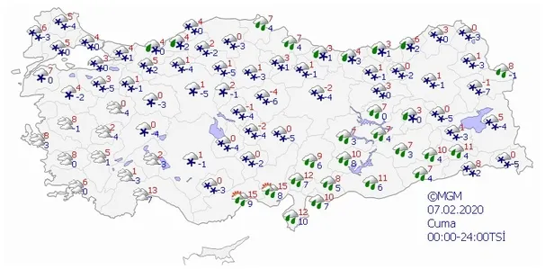 Meteoroloji Genel Müdürlüğü ve İstanbul Büyükşehir Belediyesi (İBB) AKOM verilerine göre; Çarşamba akşam saatlerinden itibaren İstanbul başta olmak üzere yurdun tamamına yakın bölümünde Sibirya kökenli soğuk ve yağışlı havalar etkili olacak. Hava sıcaklıklarının 8-12 derece birden azalarak kar değerlerine gerileyeceği hesaplanıyor.