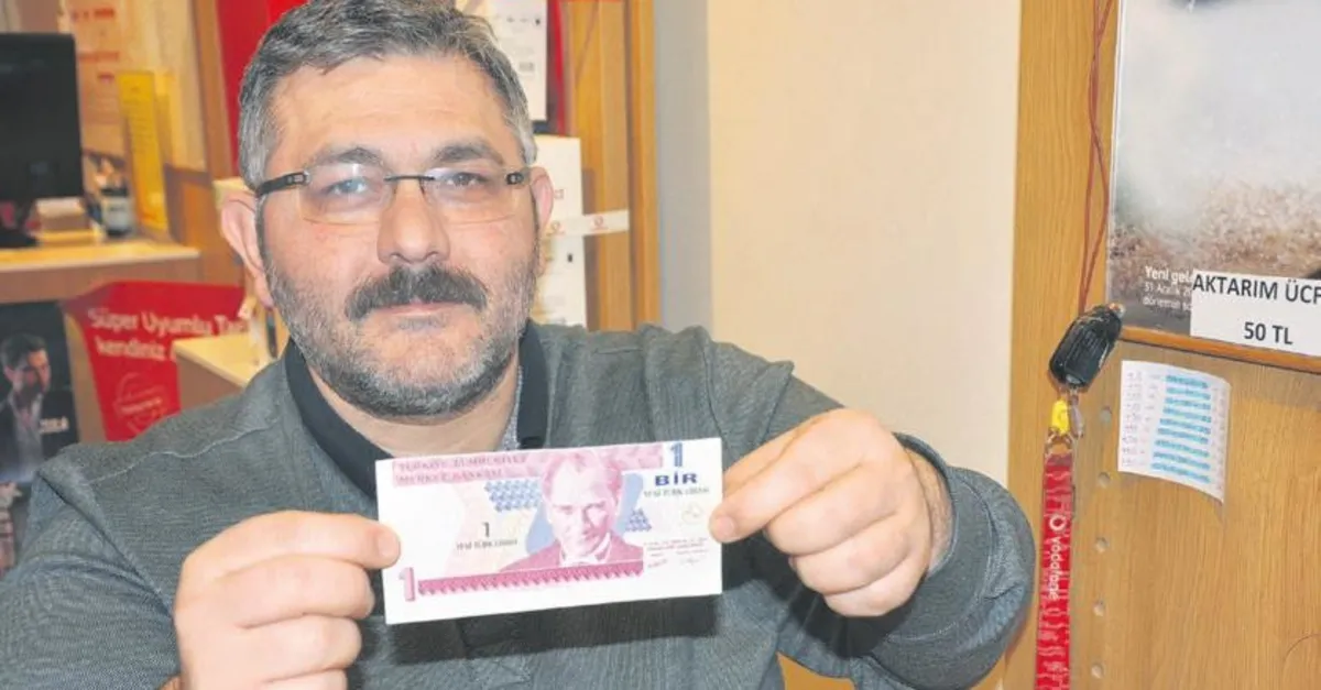 Para, parayı çekti! Gaziantep'te yaşayan Ümit NuriGültekin, 15 yıl önce banka ATM'sinden parasını çekti. Paraların içerisindeki 1 YTL'nin üst bölümde kesim hatası olduğunu fark etti. Eşi benzeri olmayan bu parayı, 100 bin liraya satışa çıkartan Gültekin, "Eşi benzeri yok. İnşallah sakladığıma değer" dedi.