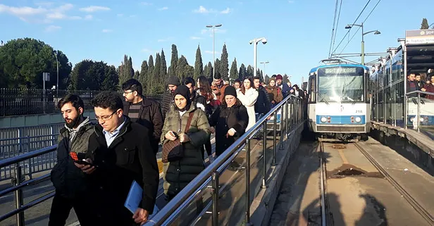 İstanbul'da tramvay seferlerinde aksama! Duraklarda yoğunluk oluştu