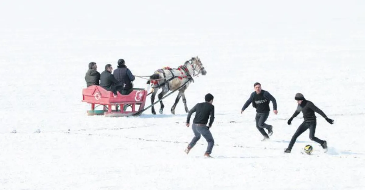 Doğu Anadolu, buz tuttu. Kars ve Ardahan sınırları arasında bulunan Çıldır Gölü, dondu. Bölgeye giden turistler buz tutmuş gölde futbol oynadı. O anlar, fotoğraflara böyle yansıdı.