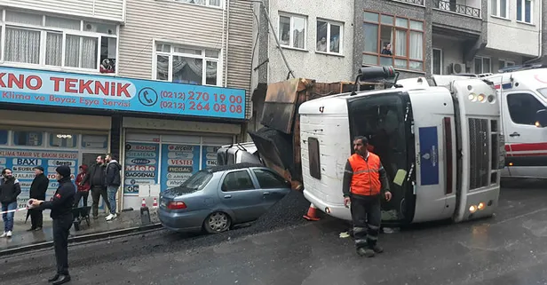İstanbul Büyükşehir Belediyesine (İBB) ait asfalt dökme aracı, Gaziosmanpaşa'da park halinde bulunan 2 aracın üzerine devrildi. Araçlar kullanılamaz hale gelirken, kamyon sürücüsü hafif yaralandı.