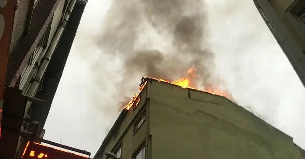 Son dakika: İstanbul Beyoğlu'nda iş hanının çatısı alev alev yandı