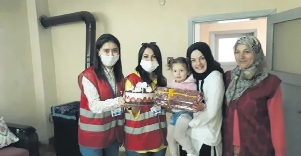 Karabük'te Vefa Sosyal Destek Grubu, yeni tip Coronavirüs (Covid- 19) tedbirleri kapsamında evinden çıkamayan 3 yaşındaki Zeynep Yavuz'a doğum gününde pastayla sürpriz yaptı.