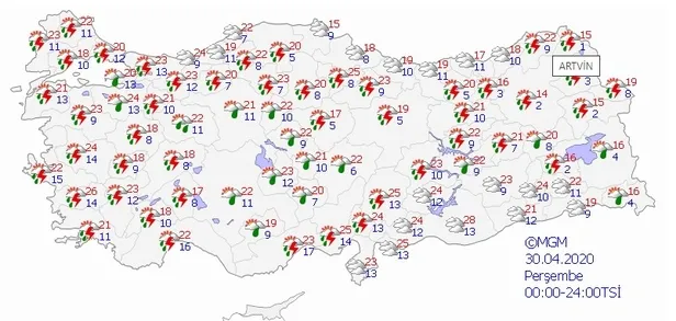 TÜRKİYE GENELİ İL İL HAVA DURUMU TAHMİNLERİ