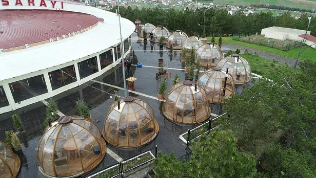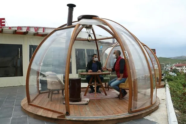 Sivas’ta açık alandaki masaların üzerini cam fanuslarla kapatarak müşterilerini soğuk havadan koruyan kafe, bu sefer aynı sistemle müşterilerini korona virüsten koruyacak.