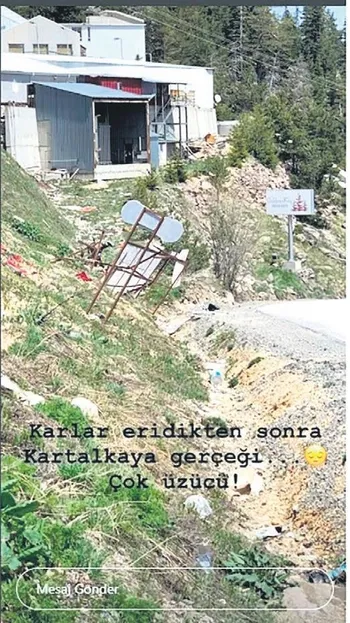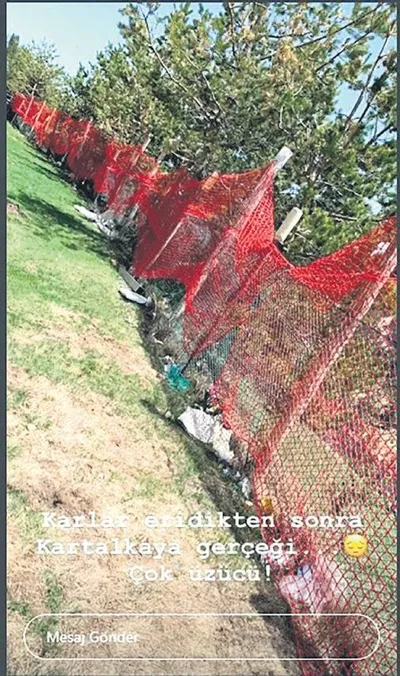 Sosyetik iş kadını, karlar eridikten sonra ortaya çıkan çöpleri ve mekanların geride bıraktıkları kirliliği görüntüleyip "çok üzücü" dedi.