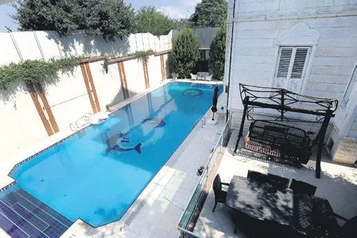 Köşkün bahçesinde yarı olimpik bir yüzme havuzu, kış bahçesi, çardak ve küçük süs havuzu var.