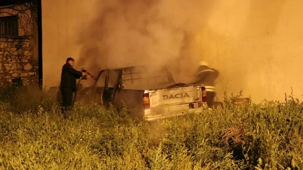 Yanan kamyonet itfaiye ekiplerince söndürüldü ancak kullanılamaz hale geldi.