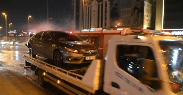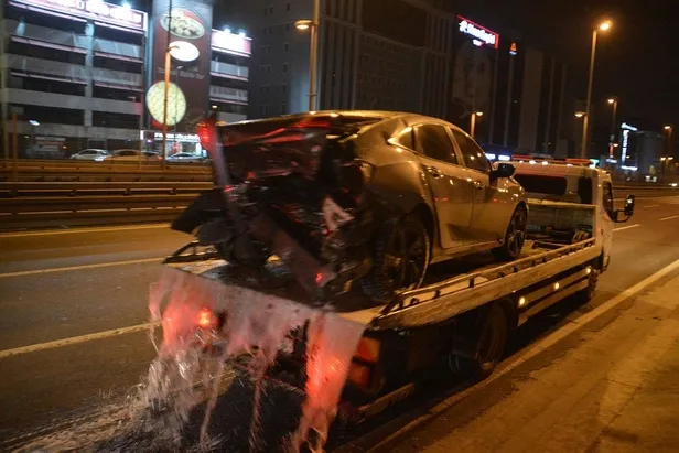 Kazayı gören bir vatandaş ise "İkisi makas atıyorlardı arkadan arabaya çarptılar o sırada ikisi de kaza yaptılar. Mercedes vurdu, Honda Civic'e vurdu. Ondan sonra refüje vurdu sonra kaçtı" şeklinde konuştu.