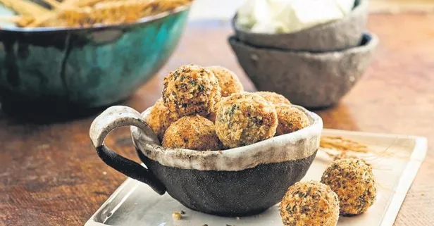 Toz kırmızıbiber, zerdeçal ve karabiberi harmanlayıp bir kenara alın. Bayat ekmekleri tavada veya ekmek kızartma makinesinde ya da fırında renk alana dek kızartın. Havanda dövüp veya mutfak robotundan geçirip toz haline getirin. Üzerine, ufalanmış keçi peyniri, ince kıyılmış maydanoz, dereotu ve biberiye ilave edip yoğurun.
