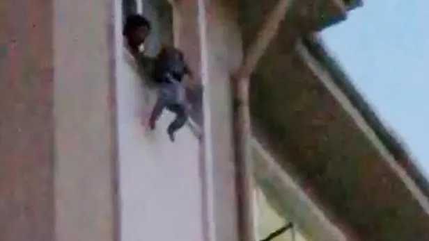 Olay anı çevredekilerin cep telefonu kamerasıyla anbean kaydedildi. Görüntülerde kızı koltuk altlarından tutarak camdan sarkıttığı görülen ve "Atayım mı aşağı" diye bağırdığı duyulan kadını çevredekilerin "Çocuğu içeri al" ve "Yapma" diye ikna etmeye çalıştığı görüldü.