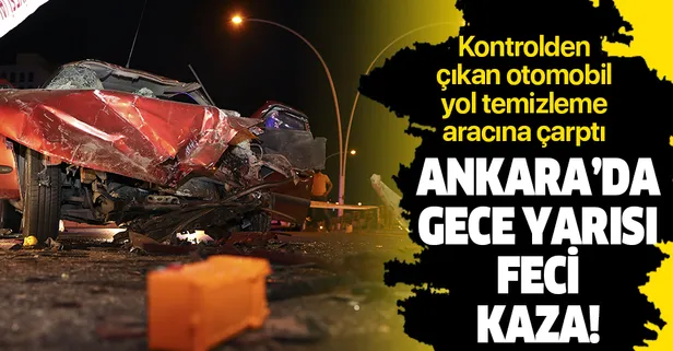 Son dakika: Ankara'da gece yarısı feci kaza! Otomobil yol temizleme aracına çarptı: 2 ölü, 1'i çocuk 3 yaralı