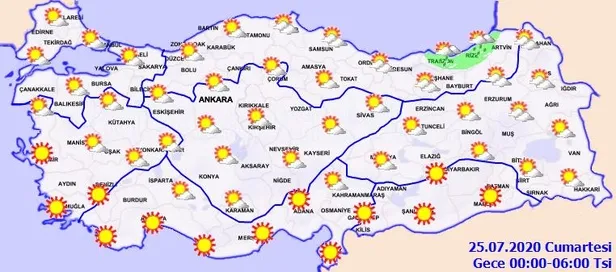 Meteoroloji Genel Müdürlüğü tarafından yapılan son değerlendirmelere göre; Ülkemizin kuzeydoğu kesimlerinin parçalı ve yer yer çok bulutlu, Doğu Karadeniz Bölgesi, Doğu Anadolu’nun kuzeydoğusu ile Ordu ve Giresun çevrelerinin yerel olmak üzere sağanak ve gök gürültülü sağanak yağışlı, diğer yerlerin az bulutlu ve açık geçeceği tahmin ediliyor. Peki İstanbul, Ankara ve İzmir'de hava nasıl olacak? İşte, 24 Temmuz il il hava durumu tahminleri...