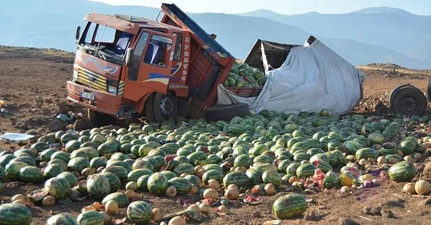 Kaza, sabah saatlerinde İslahiye-Nurdağı karayolunun 7'nci kilometresinde meydana geldi. Nurdağı'ndan yüklediği 13 ton karpuzu Hatay'a götüren İbrahim Yıldız (63) yönetimindeki 31 HZ 106 plakalı kamyon, sürücüsünün kontrolünden çıktı ve bariyerlere çarparak yol kenarındaki araziye devrildi. Sürücünün yara almadığı kazada, devrilerek hasar gören kamyonun kasasındaki karpuzlar da araziye savruldu. Araziye saçılan karpuzlar, çağırılan başka bir kamyonla Hatay'a gönderilirken, kaza yapan kamyon ise çekici ile kaldırıldı.