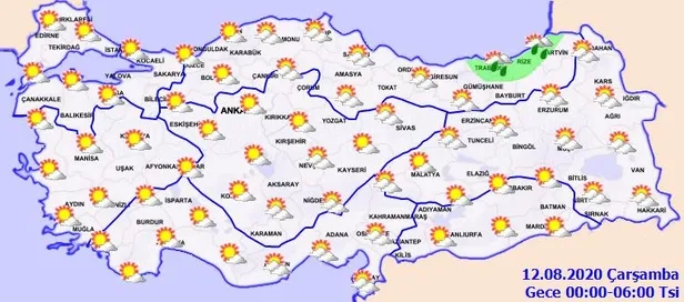 Meteoroloji Genel Müdürlüğü tarafından yapılan son değerlendirmelere göre: Ülkemizin kuzey ve iç kesimlerinin parçalı yer yer çok bulutlu, Doğu Karadeniz, Doğu Anadolu'nun kuzeyi, Ordu, Tokat, Osmaniye, Hatay'ın kuzey ve kıyı kesimleri, Adana'nın iç kesimleri ve Toroslar mevkii, Kahramanmaraş'ın batısının yerel olmak üzere sağanak ve gök gürültülü sağanak yağışlı, diğer yerlerin az bulutlu ve açık geçeceği tahmin ediliyor. Yağışların Trabzon'un doğusu ile Rize ve Artvin çevrelerinde çok kuvvetli (51-75 mm), Rize ve Artvin'in kıyı kesimlerinde şiddetli (76-100 mm), Rize'nin Pazar, Ardeşen ve Fındıklı ilçeleri ile Çarşamba akşam saatlerine kadar Artvin'in Arhavi, Hopa ve Kemalpaşa ilçelerinde yer yer aşırı (100 mm ve üzeri) olacağı tahmin ediliyor.