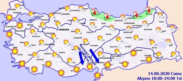 Meteoroloji Genel Müdürlüğü tarafından yapılan son değerlendirmelere göre: Ülkemizin kuzey kesimlerinin parçalı yer yer çok bulutlu, Orta ve Doğu Karadeniz kıyıları, Sinop, Tokat, Artvin ile Van'ın doğusu ve Ağrı'nın güneyinin yerel olmak üzere sağanak ve gök gürültülü sağanak yağışlı geçeceği tahmin ediliyor. Peki İstanbul, Ankara ve İzmir'de hava nasıl olacak? İşte, 14 Ağustos il il hava durumu tahminleri...