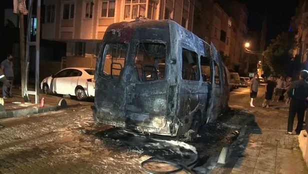 Son dakika: Küçükçekmecece'de servis minibüsü alev alev yandı: 3 kişi son anda kurtuldu
