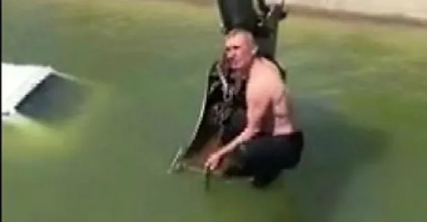 Denizli'nin Çivril ilçesinde otomobilin direksiyon hakimiyetini kaybeden sürücü, sulama kanalına düştü. Otomobil içerisinden yara almadan kurtulan sürücünün yardımına mahalle muhtarı yetişti. Muhtar üzerini çıkartarak suya girdi ve otomobili su kanalından çıkardığı sırada ilginç görüntüler ortaya çıktı.