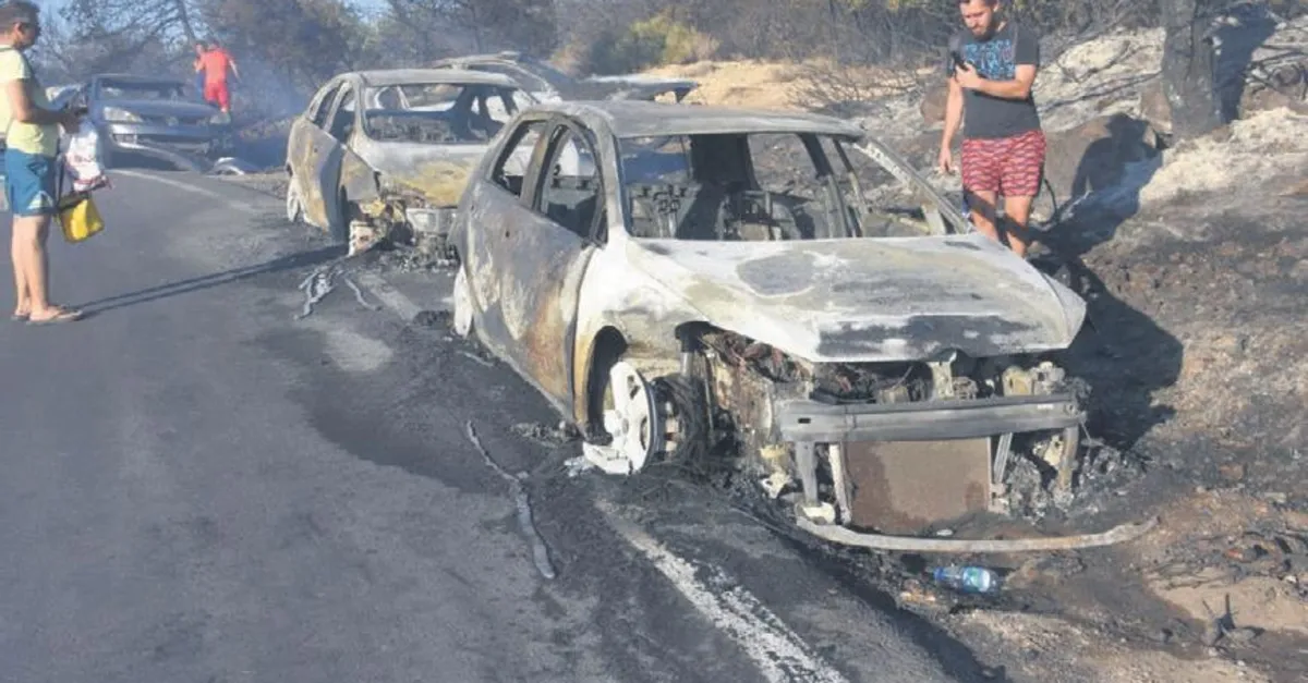 İzmir Seferihisar'da otluk alanda yangın çıktı. Alevler o sırada plajda bulunan vatandaşların park halindeki araçlarına da sıçradı. 58 aracı küle çeviren yangın, güçlükle söndürüldü.