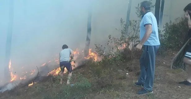 Ekiplerin yangını söndürmek için çalışmaları devam ediyor. Yangını söndürmek için ekiplere vatandaşlar da yardım ediyor.