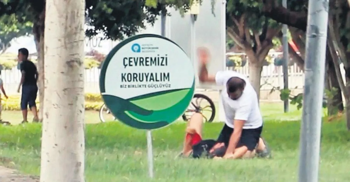 Kuzenler, birbirine kızdı. Parktaki kavgayı kimse ayıramadı. O anlar kameraya yansıdı