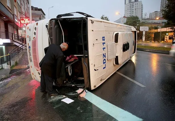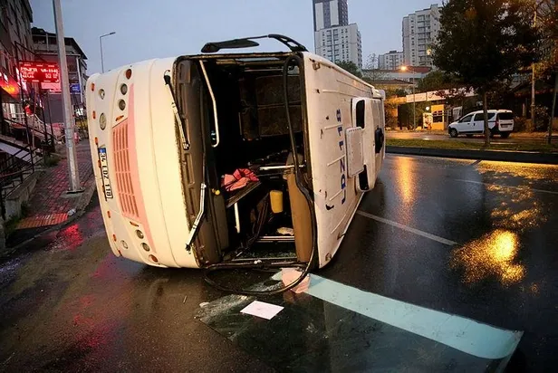 Olay bugün sabah 6.30 sıralarında Gaziosmanpaşa'da yaşandı. İçerisindeki yolcuları ile birlikte seyir halinde olan 34 LDZ 118 plaklı servis midibüsü, yağmur sebebiyle kayganlaşan zeminin de etkisiy sürücün direksiyon hakimiyetini kaybetmesinden dolayı devrildi.