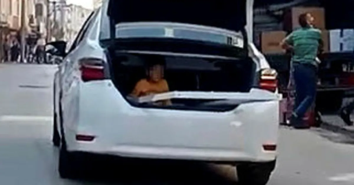 Bursa İnegöl ilçesinde bir otomobil bagajında yolculuk eden küçük çocuğu görenler şok oldu. O anlar bir vatandaş tarafından görüntülendi. Edinilen bilgiye göre, olay İnegöl ilçe merkezinde meydana geldi.
