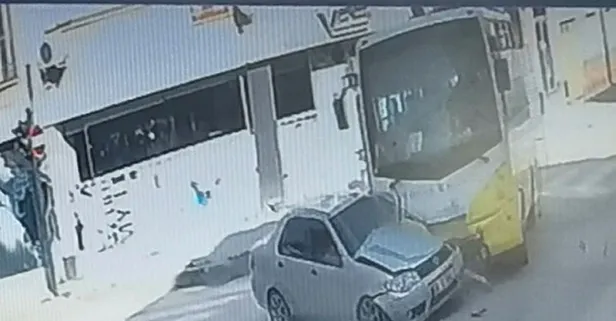 Bursa'da halk otobüsü kırmızı ışıkta geçen otomobili biçti