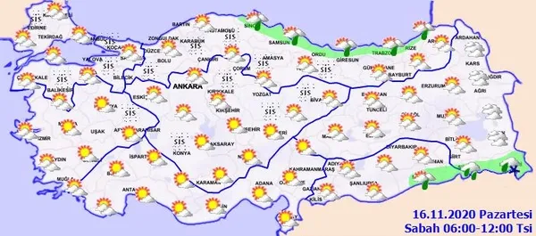 Meteoroloji Genel Müdürlüğünden son dakika hava durumu uyarıları gelmeye devam ediyor. Yapılan son değerlendirmeye göre, ülkemizin doğu kesimleri parçalı yer yer çok bulutlu, Orta ve Doğu Karadeniz kıyıları, Sinop ve Mardin çevrelerinin sağanak yağışlı; Şırnak, Hakkari ve Van çevrelerinin yağmurlu, yükseklerinin karla karışık yağmurlu; diğer yerlerin parçalı ve az bulutlu geçeceği tahmin ediliyor. Sabah ve gece saatlerinde Marmara, İç Ege ve İç Anadolu bölgesi ile Batı ve Orta Karadeniz'in iç kesimlerinde pus ve yer yer sis hadisesi bekleniyor. Peki, İstanbul, Ankara ve İzmir'de hava nasıl olacak? İşte, 16 Kasım il il hava durumu tahminleri...