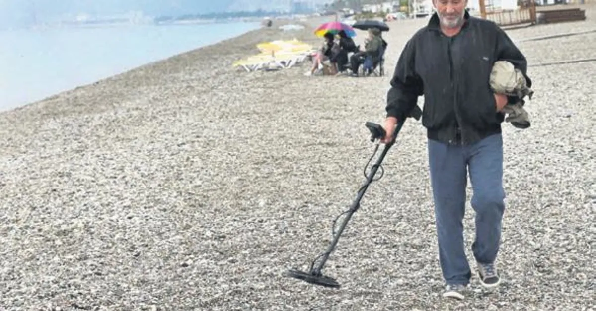 Antalya'nın Konyaaltı sahilinde altın sezonu açıldı. İlk yağmurun ardından sahile giden vatandaşlar dedektör ile altın aradı.