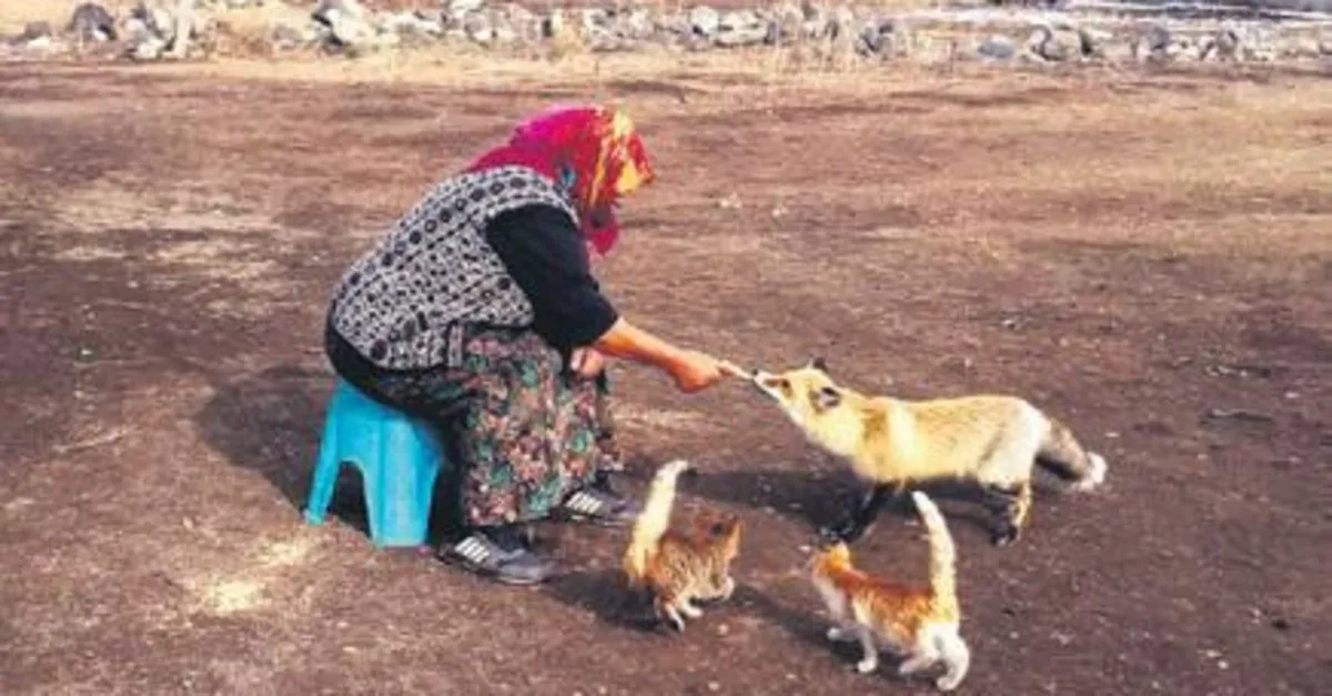Kars'ta Menice Başkaya (66), 4 aydır evinin önüne gelen tilkiyi eliyle besliyor. Yaşlı kadın, 'Yonca' ismini verdiği tilkinin ilk günler sadece gece geldiğini, şimdi ise gün boyu gelerek ikram ettikleri yiyeceklerden nasiplendiğini söyledi. Başkaya, "Benim dişlerim olmadığından bana ayrılan payımı tilkiyle paylaşıyorum" dedi.