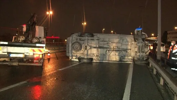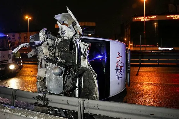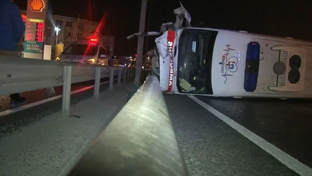 Küçükçekmece D-100 Karayolu'nda özel bir firmaya ait hasta nakil ambulansı yağmur nedeniyle kayganlaşan yolda sürücüsünün direksiyon hakimiyetini kaybetmesi sonucu önce panelvan minibüse çarptı, ardından bariyerlere çarparak devrildi.