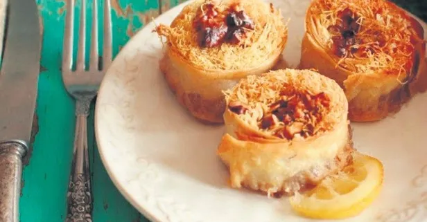 Tatlının şerbeti için su ve şekeri tencerede kaynatın. Kaynamaya başlayınca limon suyunu ilave edip 10 dakika daha kaynatın ve soğumaya bırakın. Tereyağını kısık ateşte eritin. Hafifçe ılındıktan sonra tereyağının yarısından fazlasını tel kadayıfların üzerine gezdirip elinizle iyice ovalayarak yağı kadayıflara bulayın. Yufkaya sarılı tel kadayıf tatlısı tarifinin detayları.