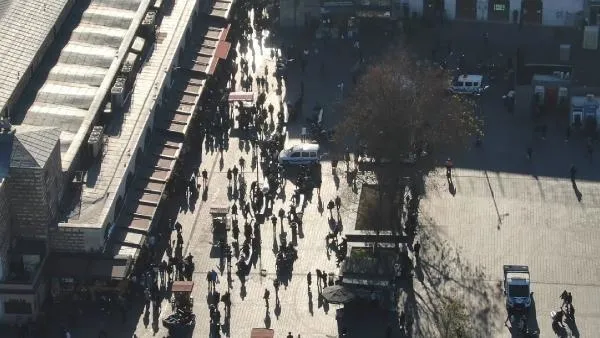 Son dakika haberi... 2020 yılını geride bırakmaya artık saatler kaldı. İstanbul'da yılbaşına saatler kala metrobüs ve trafikte yoğunluk yaşanıyor. Trafik neredeyse durma noktasına gelirken, İBB'nin trafik haritasına göre yoğunluğun yüzde 60'lara kadar arttığı görüldü. Öte yandan Eminönü'nde sokağa çıkma kısıtlamasına az bir süre kala vatandaşlar burada bulunan işyerlerinden alışveriş yaptı. Eminönü'ndeki yılbaşı yoğunluğu havadan da görüntülendi.