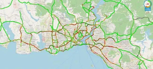 Trafik neredeyse durma noktasına gelirken, İBB'nin trafik haritasına göre yoğunluğun yüzde 60'lara kadar arttığı görüldü.