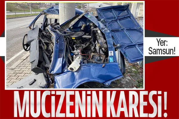 Samsun'da otomobilin hurdaya döndüğü kazada mucize kurtuluş!