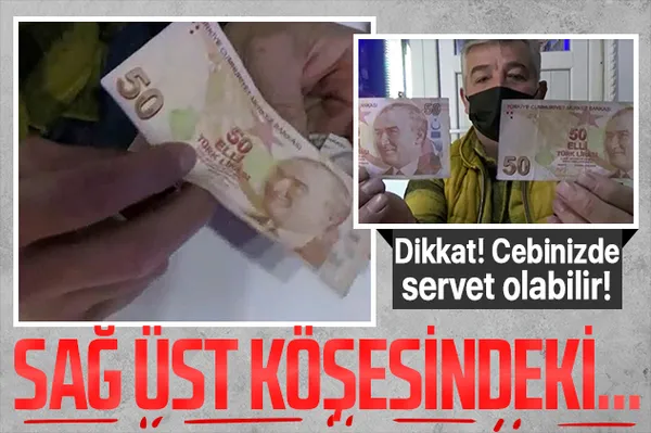 Dikkat! Cebinizde servet taşıyor olabilirsiniz! 50 TL’nin sağ üst köşesindeki…