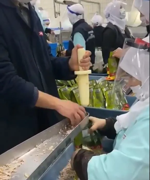 Bir ton balığı üretim firmasında çekilen elle paketleme görüntüleri sosyal medyada tepki çekti