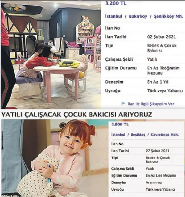 Bazı aileler, daha önce çalışılan ailelerden referans talep etti. "Yazı 4 ay Bodrum'da geçiriyoruz. Bu sürede izin kullanılamaz. İstanbul'a dönüşte izinler toplu olarak kullanılır" diyen de, bakıcının kilolu olmamasını isteyen de çıktı. Bakıcı ilanlarında geçen ücretler ise 2 bin ile 7 bin lira arasında değişti.