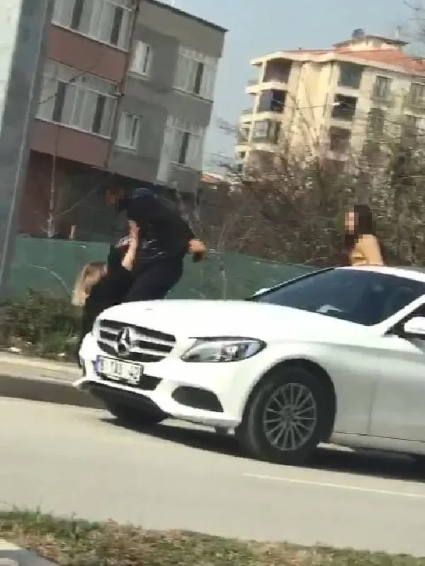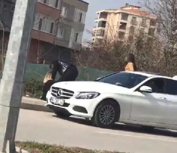 A.D. de bir kadın ile araçtan inerek A.Ş.'nin yanına geldi. İkili arasındaki kaldırımda devam eden tartışma sırasında A.D. genç kadını saçından tutup yerde sürükleyerek, dövmeye başladı. Olay yerinden çocuklarıyla geçen bir kadın ise dayak olayına müdahale etti. Kimliği öğrenilemeyen kadın, A.Ş.'ye kendisini siper ederek, şiddete engel olmaya çalıştı.