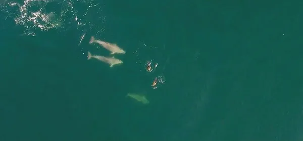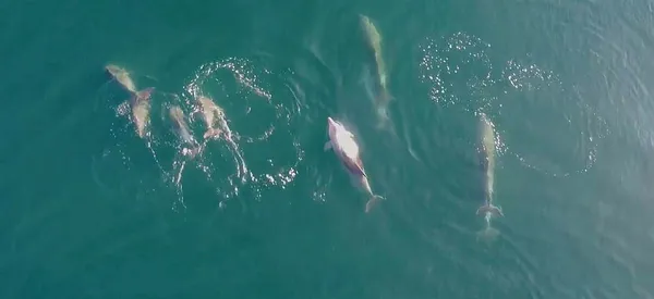Tekirdağ'ın Şarköy ilçesi açıklarında bir grup yunus, dronla görüntülendi.