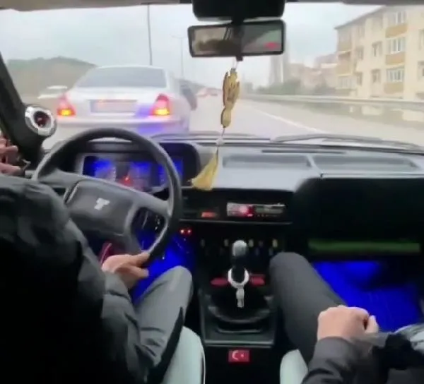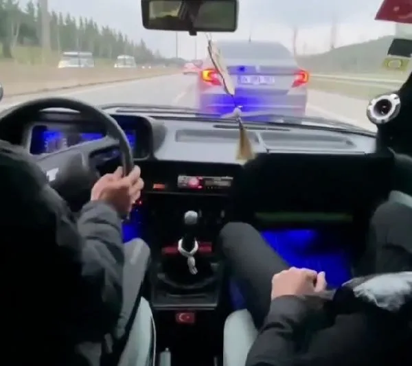 A.K. polis ekiplerince gözaltına alındı. A.K.'nin araçla yolda ilerlerken, diğer araçlara makas atma görüntüsü kameraya yansıdı.