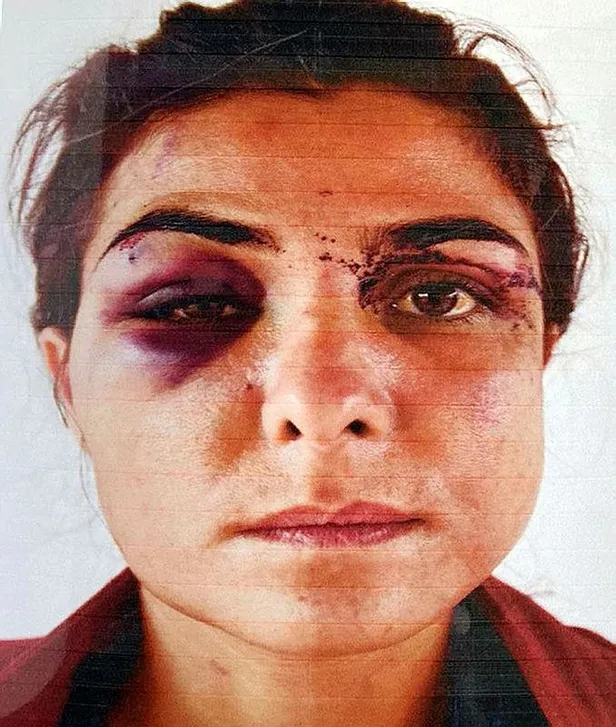 "Her defasında olduğu gibi geri döndüm. Biz Melike ile görüşmeleri yüzünden yine kavga ettik. Beni balkondan atmaya çalıştı. Yüzüme, gözüme vurdu. Evden kaçmaya çalışırken bana kelepçe taktı. Kendisi özel güvenlikken kelepçesi vardı. Beni koltuğa oturttu. Ellerim kelepçeli, gözlerim mor şekilde fotoğraflarımı çekti. Amcasının oğlu ile bir yere giderken beni elleri kelepçeli bıraktı. Sonra kızımı okuldan getirdiğinde kelepçeleri açtı. Arkadaşları ile ava gidiyordu. Dönüşte arkadaşları evdeyken banyoya giriyordu. Beni de banyoya sokuyordu ve ilişki istiyordu. Utanmıyordu. Çocuklarım evin içinde ses çıkardıkları için oyun oynatmıyordu. Genelde 8 yaşındaki büyük kızımı dövüyordu. Ama ağlayamıyordu. Çünkü ağladığında daha çok dayak yiyordu. 12 yıllık evliliğimizde sürekli kavgalı yaşadık. İyi zamanlarımız da oldu. Ama iyi günlerimizi hep unuttururdu. Senede 3-4 defa çok büyük dayakları oldu."