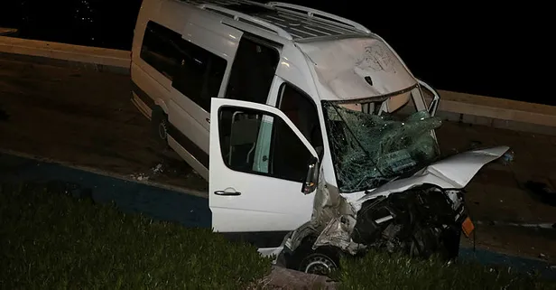 Görüntülerde otoyoldan sürücüsünün direksiyon hakimiyetini kaybettiği servis minibüsünün hızla kavşağa çıktığı, trafik lambalarına çarptığı ve savrulduğu anlar görüldü. Kaza ile ilgili başlatılan soruşturma sürüyor.