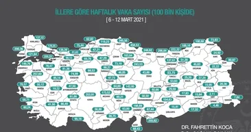 Sağlık Bakanı Fahrettin Koca, son hafta 100.000 nüfusta vaka görünme oranı en çok artan ve azalan illeri açıkladı.