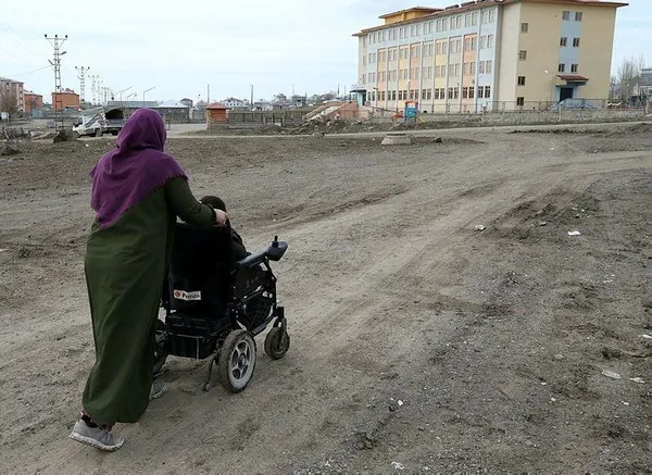 Muş Bulanık'ta yaşadığı tüm zorluklara rağmen kızlarına gözü gibi bakan 4 çocuk annesi Nurcan Örün, her gün 12 yaşındaki kızı Merve'yi tekerlekli sandalyeyle evlerine 1 kilometre uzaklıktaki okula götürüyor.