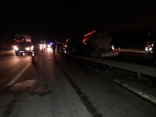 Büyükçekmece, TEM Otoyolu, Kumburgaz mevkiinde atık su taşıyan tanker henüz bilinmeyen bir nedenle sürücüsünün direksiyon hakimiyetini kaybetmesi sonucu önce yön tabelası direğine, ardından da bariyerlere çarptı.