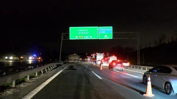 SON DAKİKA: Büyüçekmece'de gece yarısı feci kaza: Tanker bariyerlere çarptı:1 yaralı